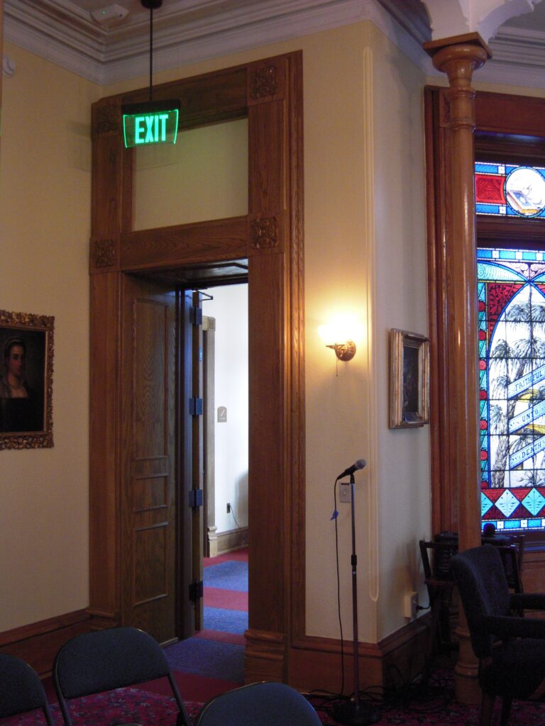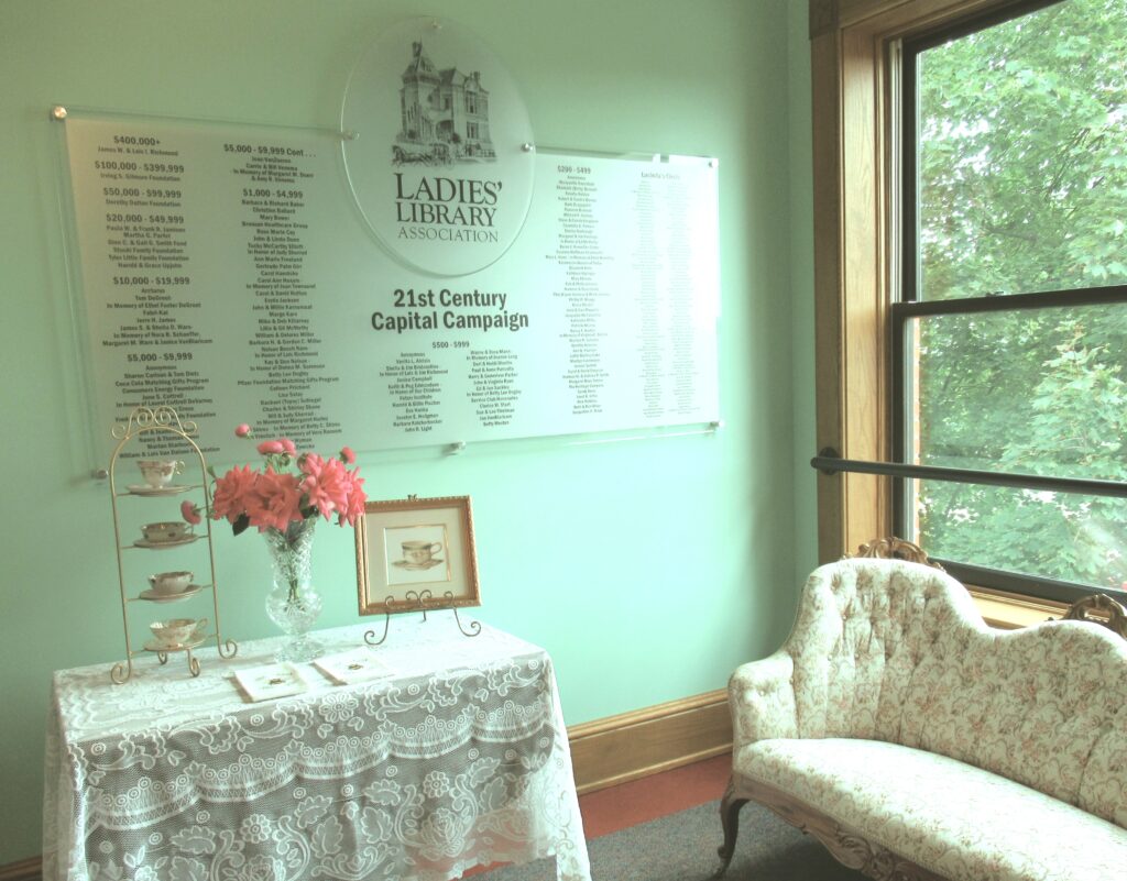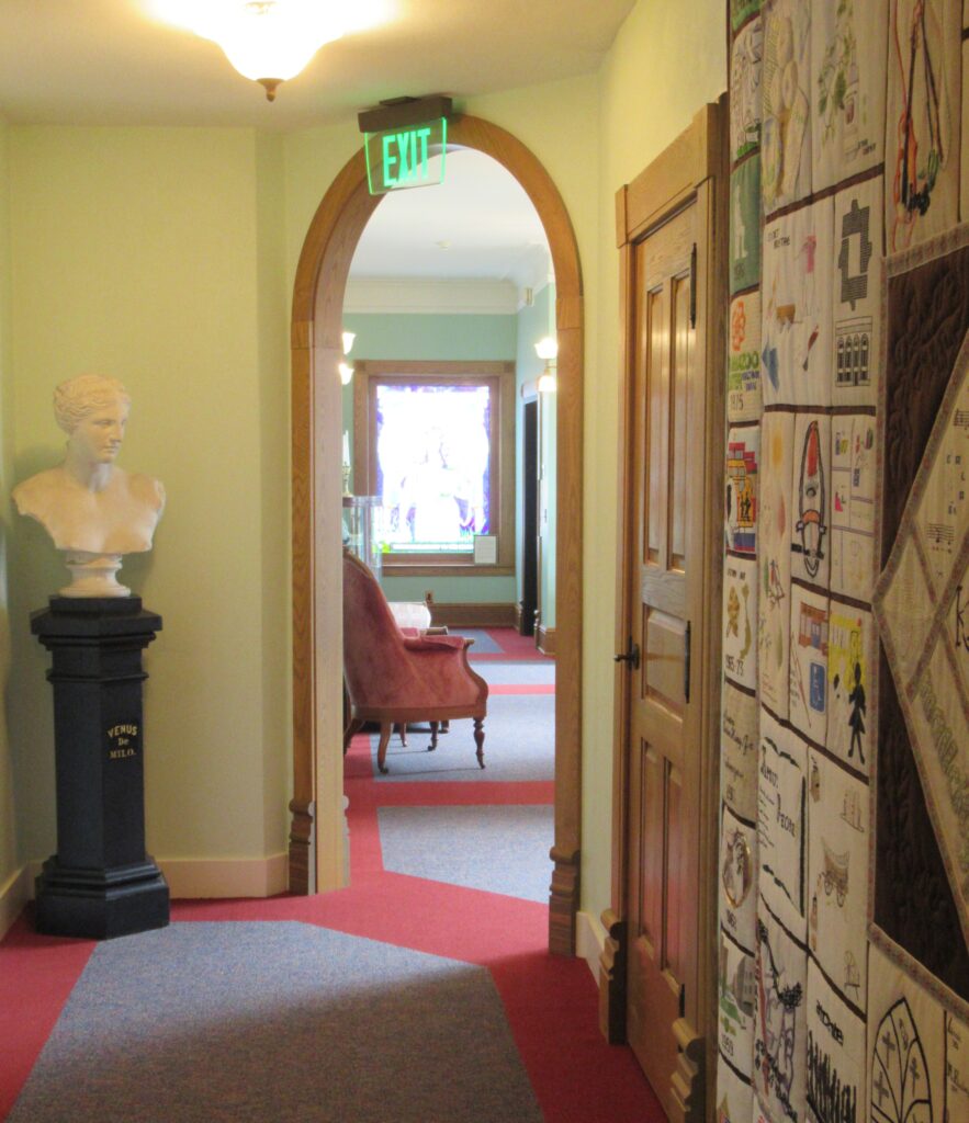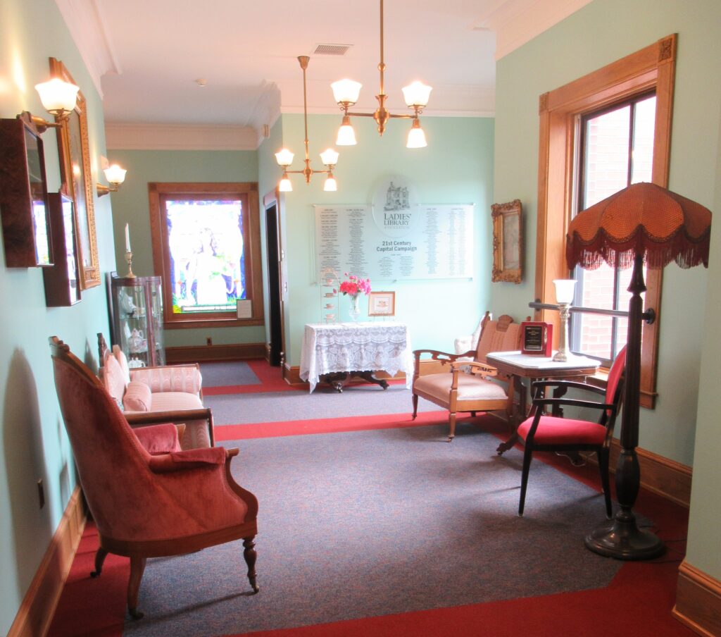 Building Addition Door to building addition (first floor) View from hallway to building addition (second floor) Donation wall for building addition Sitting room on second floor of building addition