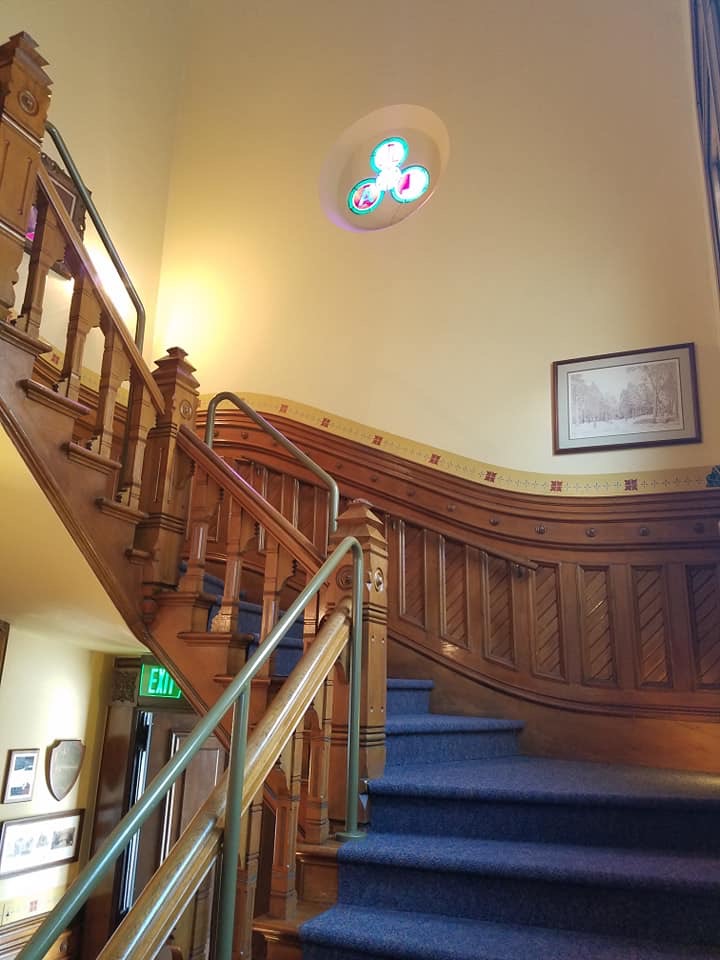 Building Photographs Ladies Library, Kalamazoo, MI Entrance Peak Exterior-Building Entrance Gargoyle Exterior-Gargoyle at entrance Exterior-Barrier-free entrance on side of building Small Library Staircase Vestibule Milton Window Longfellow Window Dickens Window Skylight