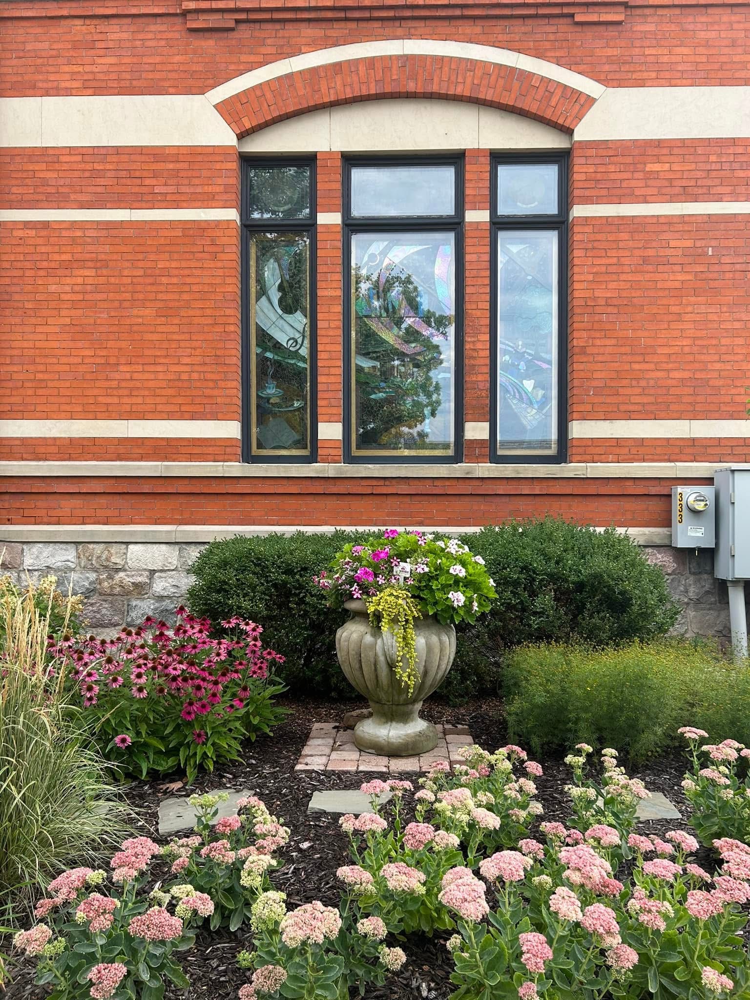 Constructed in 1878, this late Venetian Gothic building features brick, stone, and tile detailing, complemented by stained glass windows.